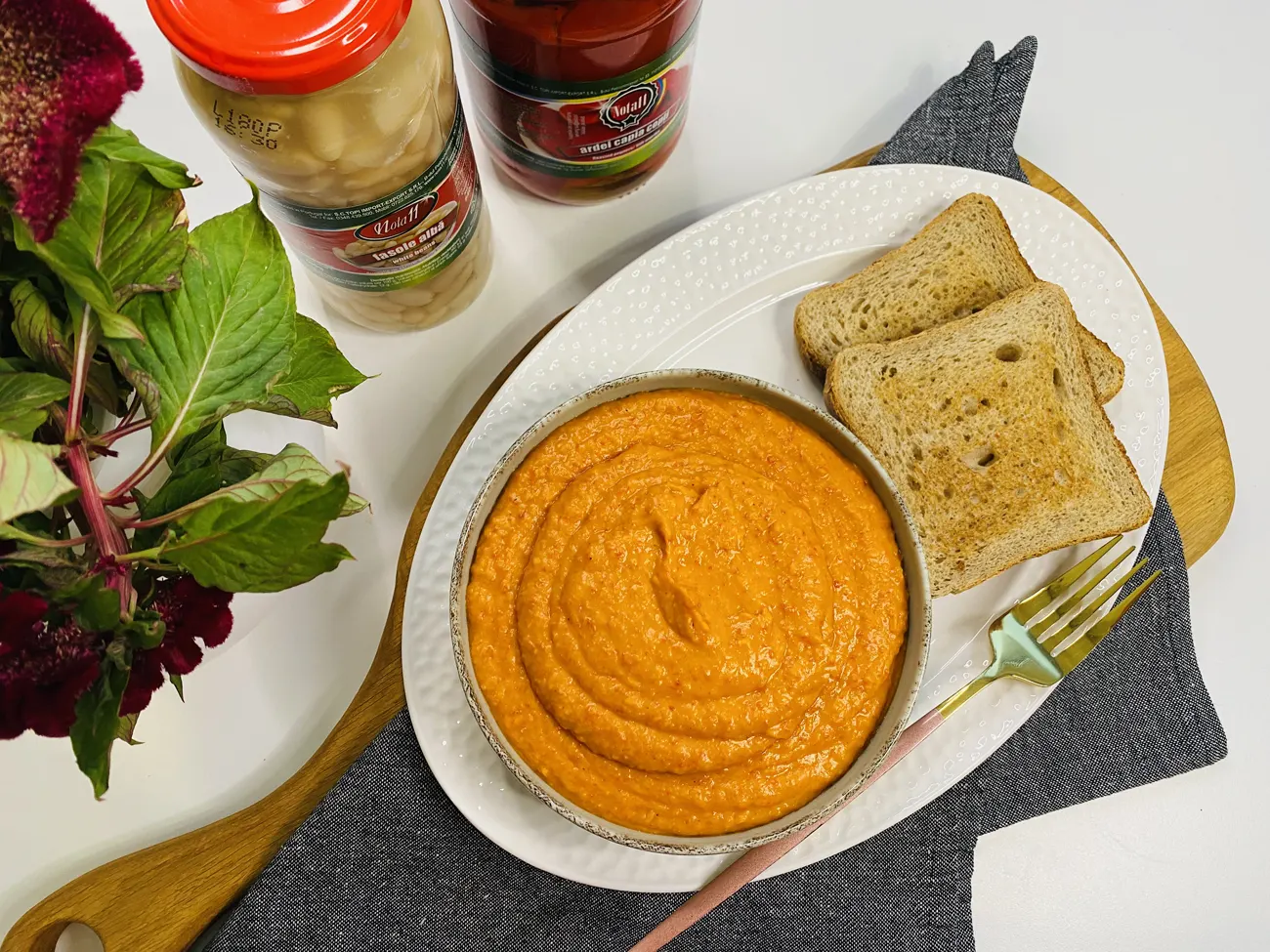 Bine, eu aleg varianta super rapida, unde cumpar de-a gata, adica la conserva, fasolea si ardeiul capia, de la Nota 11, si nu stau eu sa le fac de la zero, sa fierb boabele de fasole, sau sa coc ardeii capia, fie pe gratar, fie la cuptor/sau la air fryer.
