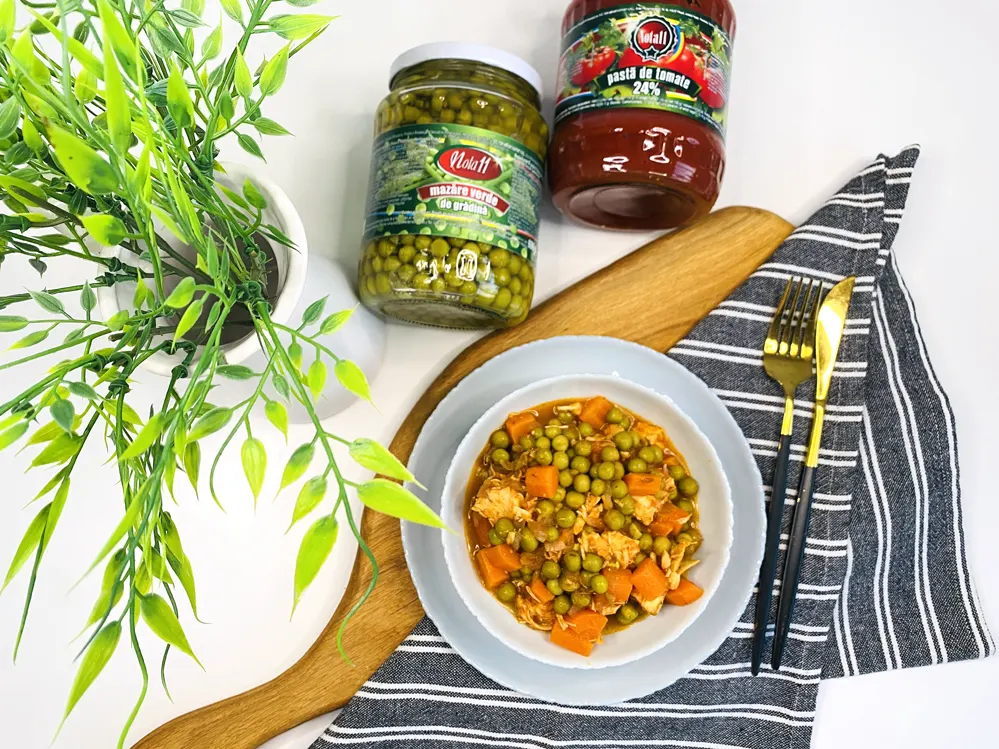 Mare mi-a fost surprinderea cand am constatat ca in atata timp n-am impartasit cu tine reteta mea de mancare de mazare cu pui, preparat destul de popular la noi in bucatarie, ce-l face si-l savuram des!