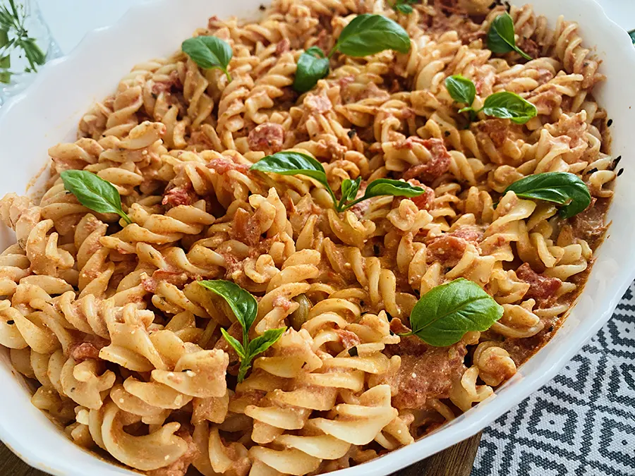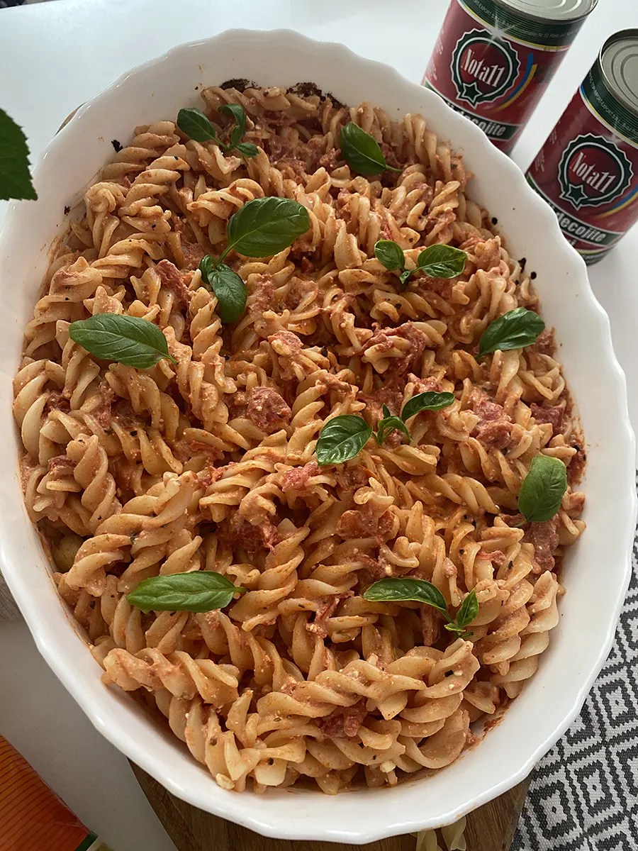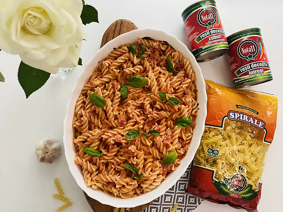 Varianta aceasta de paste cu rosii si branza vegana, este ideala pentru perioadele cand se tine post.