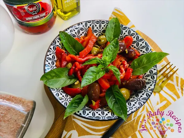 Mod de preparare Salata de ardei capia copti cu capere si masline